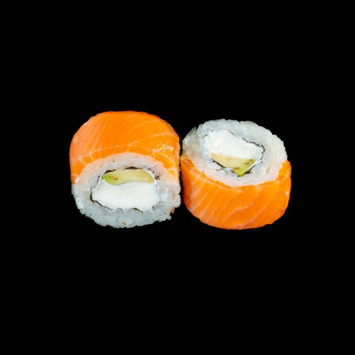 Рис, сыр сливочный, авокадо, лосось, нори.